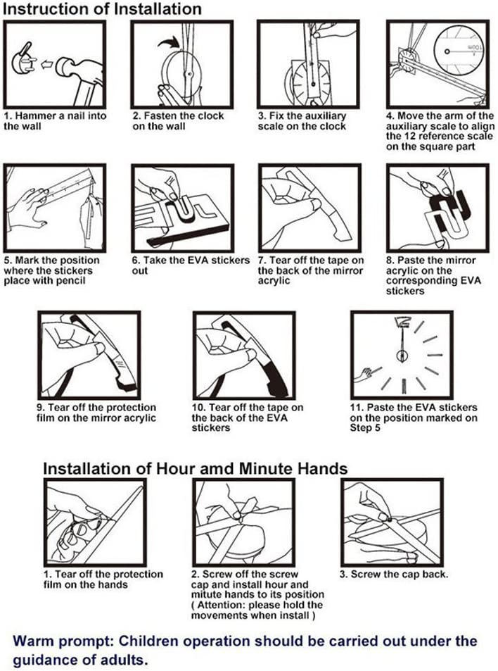 Frameless DIY Design: Arrange the pieces to customize the clock’s size and style.