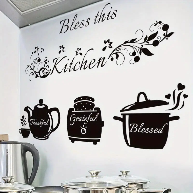 Bless This Kitchen - Cooker, Teapot - Beautiful Kitchen Wall Decal - Best For Home & Restaurant