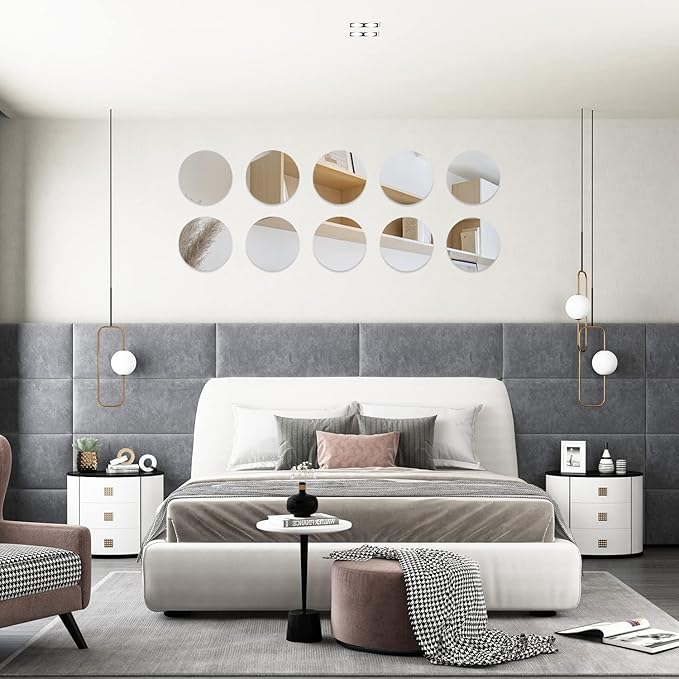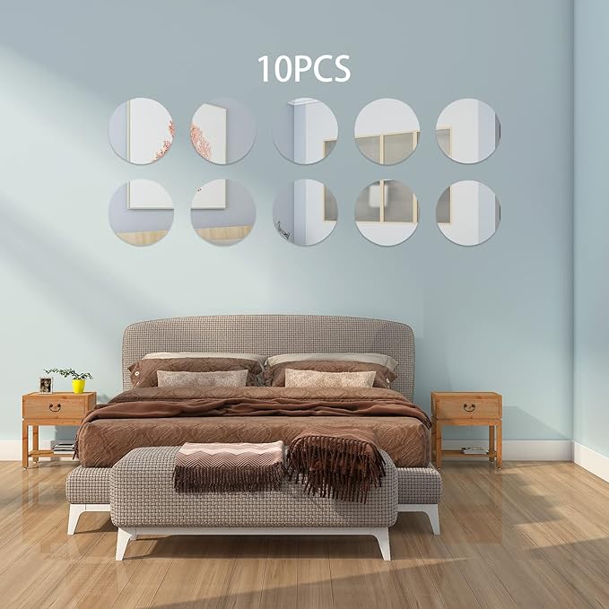Circle Acrylic Mirror - 10 pieces -Acrylic Crystal Mirror - Best For Living Room, Bedroom & Stair Wall