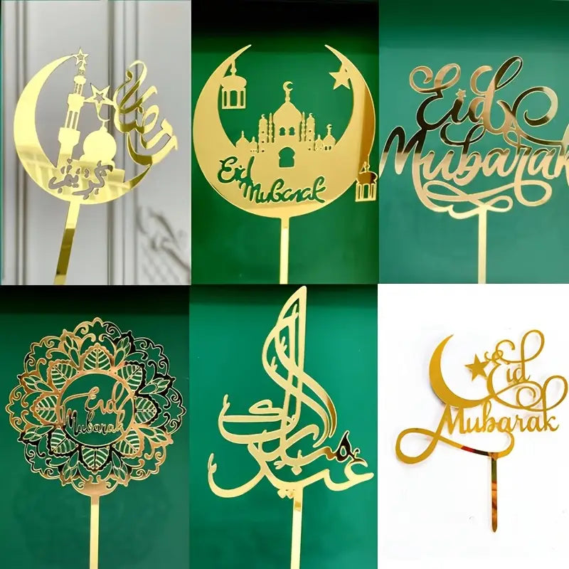 Eid Mubarak Cake Topper | set of 6 | Golden Acrylic | Eid Mubarak Cake Topper