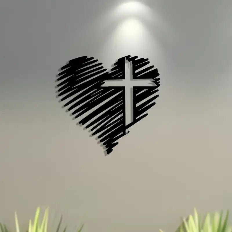 Heart With Jesus Cross - Christian Home Decal - Christmas Decoration