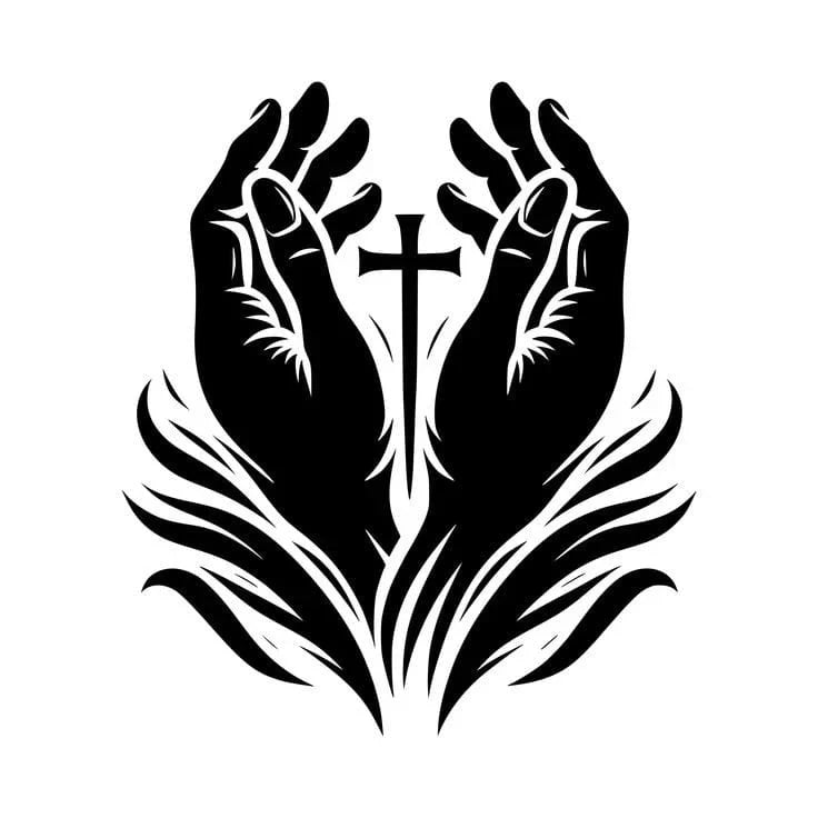 Jesus Cross with Praying Hands - Christmas & Baptism - For Church or Home