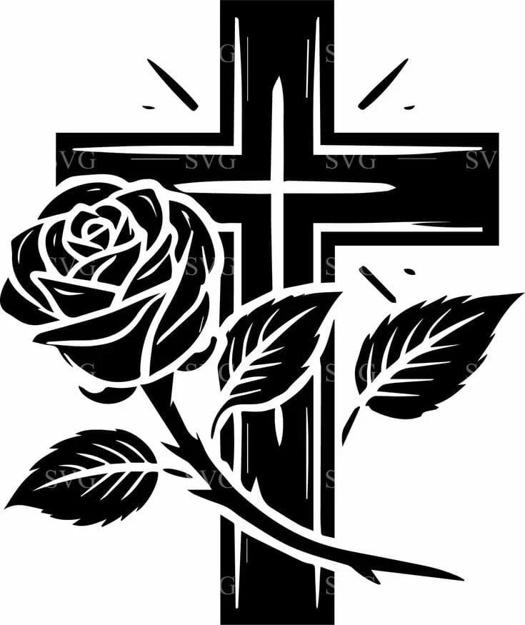 Jesus Cross With Rose - Christmas & Baptism - For Church or Home