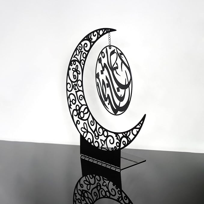 Ramadan Kareem Acrylic Crescent Decor | Moon Ramadan Decoration for Home | Eid Gifts | Black