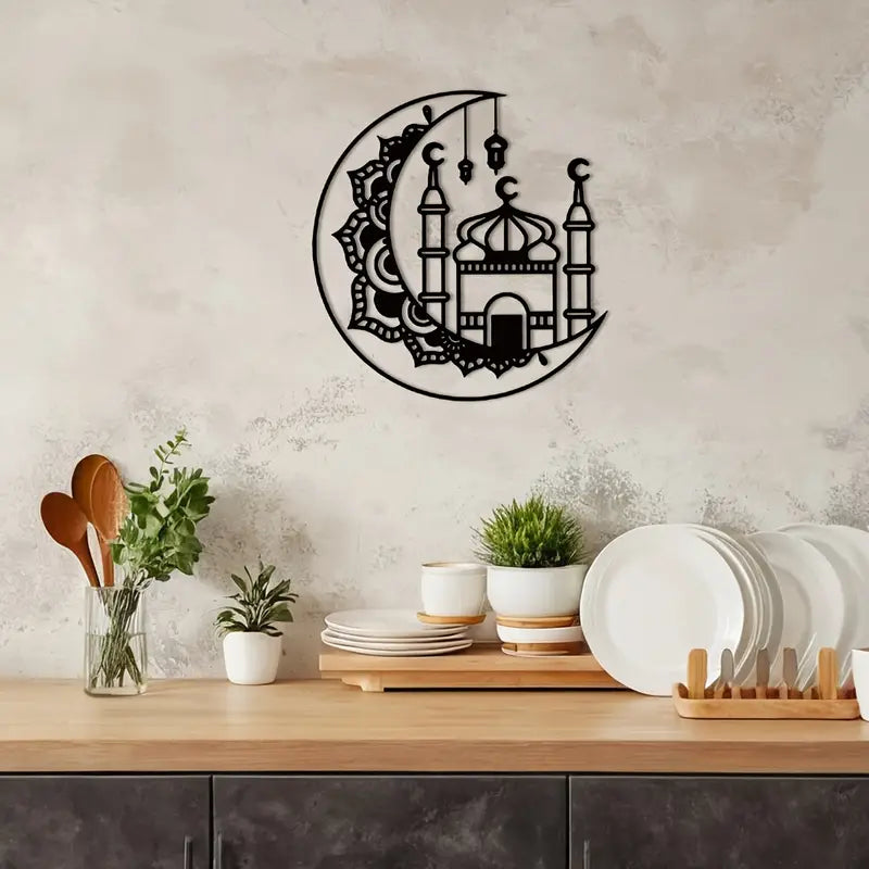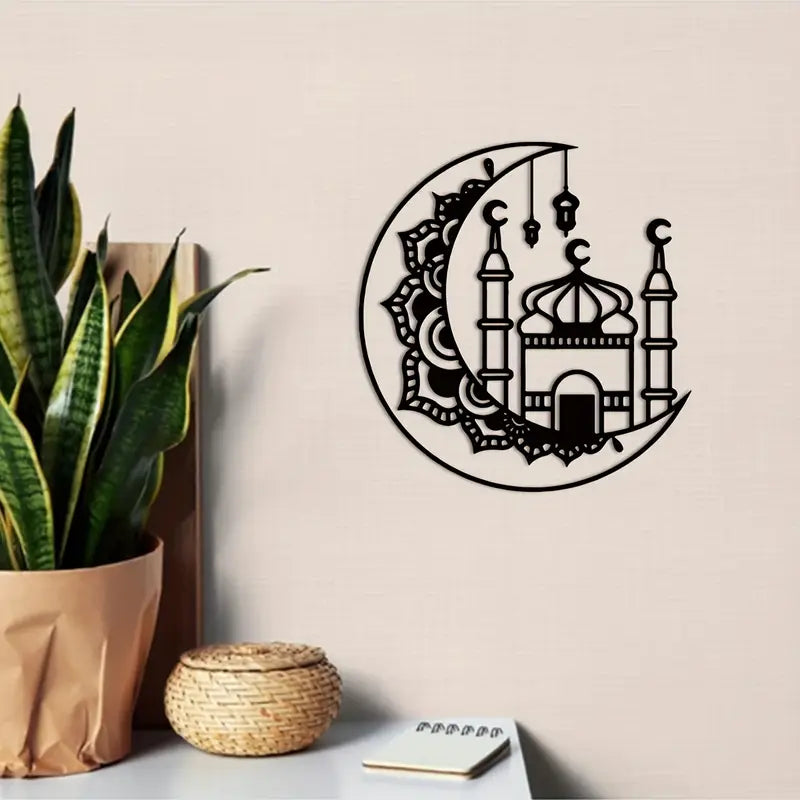 - Design: This gorgeous Ramadan Moon and Mosque Design Calligraphy with cresent will add the perfect touch to your home. Embrace the beautiful design of the moon and star.