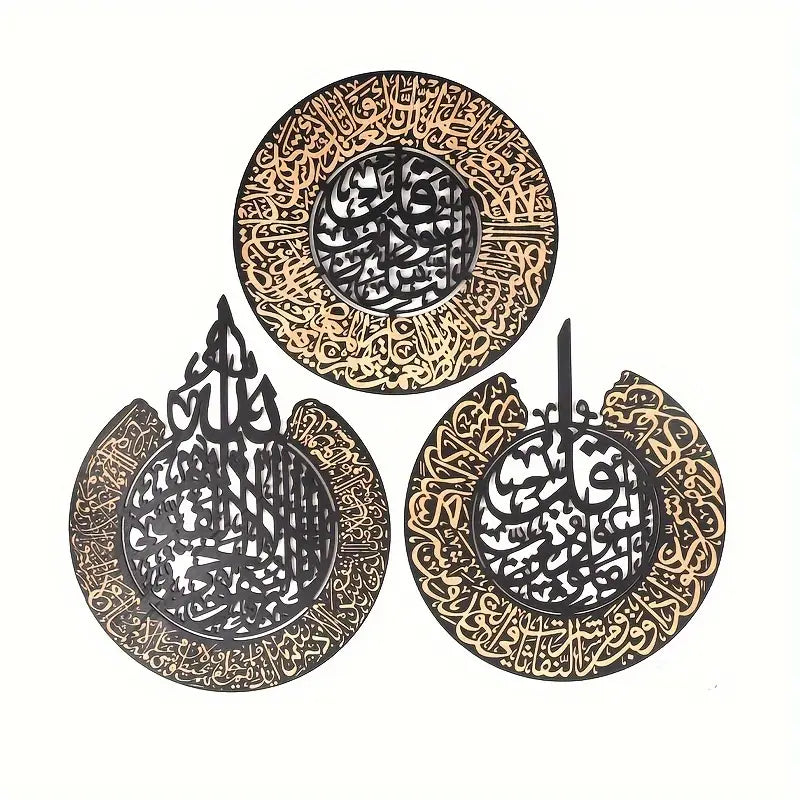 · Islamic Wall Art Excellence: A beautifully crafted featuring Set of Ayatul Kursi, Surah Falak, Surah Naas, bringing spirituality and elegance to your space.